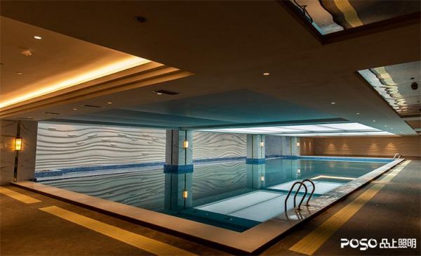 出于安全考慮,泳池上方采用了燈帶來照明,顧客游泳時不至于受到燈光干擾,人性化設(shè)計,讓光更自然。