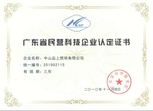 廣東省民營(yíng)科技企業(yè)認(rèn)定證書