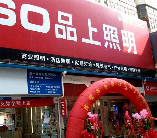 經(jīng)過(guò)全新升級(jí)的溫州專(zhuān)賣(mài)店從產(chǎn)品結(jié)構(gòu)到整體布局全面更新,達(dá)到了品上4S店的標(biāo)準(zhǔn)。為了營(yíng)造店慶和升級(jí)開(kāi)業(yè)的雙重佳訊,品上照明溫州專(zhuān)賣(mài)店用實(shí)際活動(dòng)讓利大眾,推出了11月2日至10日為期一周的全場(chǎng)七折讓利優(yōu)惠活動(dòng)。開(kāi)業(yè)盛典活動(dòng)當(dāng)天,店外彩旗飄飄、禮炮陣陣,門(mén)口擺滿了各界賓朋祝賀的花籃,讓利活動(dòng)吸引的店內(nèi)顧客盈門(mén),熱鬧的氣氛彌漫了整個(gè)燈具市場(chǎng)。