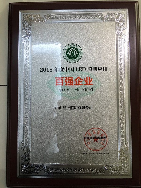 近日,由中國建筑裝飾協(xié)會主辦的“2015盛世精英匯?第六屆中國LED照明應(yīng)用峰會暨中國LED產(chǎn)業(yè)發(fā)展趨勢論壇”在廣州隆重舉行。會上,中山品上照明有限公司再次獲得“中國LED照明應(yīng)用百強(qiáng)企業(yè)”榮譽(yù)。