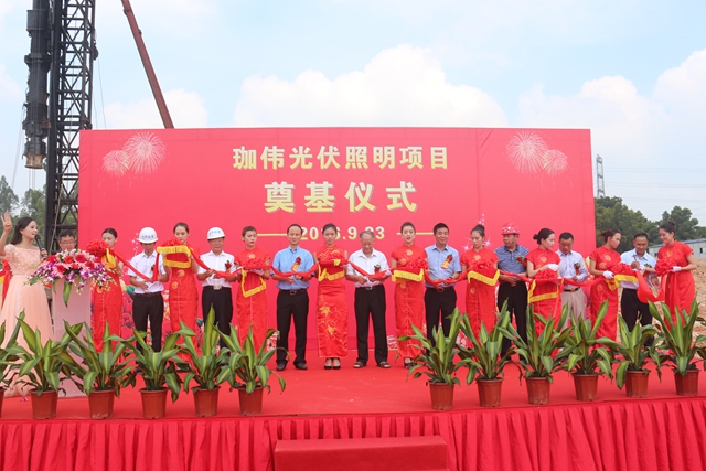 9月23日,深圳珈偉光伏照明股份有限公司光伏照明項目奠基儀式在龍崗坪地舉行。珈偉股份董事長丁孔賢教授、總裁李靂,常務(wù)副總裁、項目負(fù)責(zé)人白亮,湛江市第一建筑公司深圳分公司總經(jīng)理吳春浩、項目負(fù)責(zé)人簡亞壽,深圳市合創(chuàng)建設(shè)工程顧問有限公司董事長王玉清、副總經(jīng)理王慶華,信息產(chǎn)業(yè)電子十一設(shè)計研究院深圳分院董事長黎輝,建設(shè)銀行龍崗支行副行長溫偉波等領(lǐng)導(dǎo)和嘉賓出席活動,珈偉股份員工代表及工程施工單位代表等近100人現(xiàn)場見證項目動工這一激動人心的時刻。