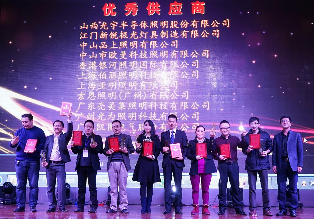 品上照明(左六)獲得“優(yōu)秀供應商”榮譽獎杯及證書
