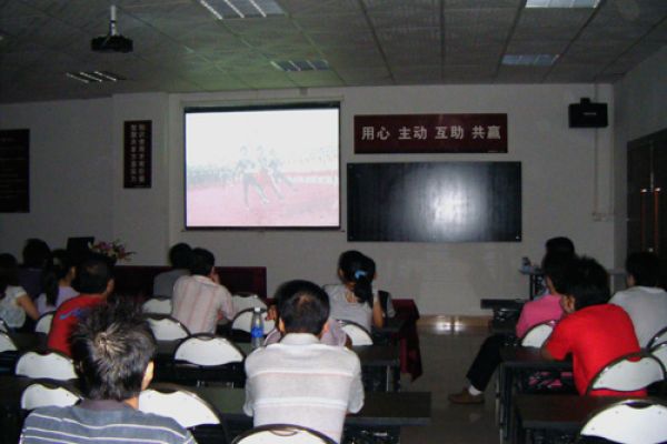 10月1日,為了讓工人們能更好地觀看建國60年國慶大閱兵,公司特地將電視直播信號接到培訓(xùn)室投影儀,透過投影來觀看國慶閱兵盛典,畫面清晰而又大氣,工人們別提多高興了!圖/國慶閱兵放映現(xiàn)場