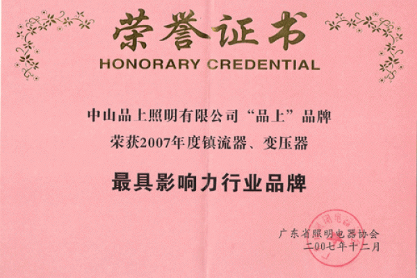 12月8日,在廣東照明電器協(xié)會(huì)成立15周年慶典上,品上品牌獲選“行業(yè)最具影響力鎮(zhèn)流器、變壓器品牌”。這是品上變壓器獲得“變壓器,用品上”的市場(chǎng)口碑后,品上鎮(zhèn)流器、變壓器再次雙雙得到行業(yè)專家評(píng)審委員會(huì)的認(rèn)可。