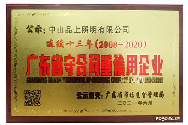 “2020年度廣東省守合同重信用企業(yè)”評(píng)審結(jié)束,正式公示,品上照明再度榮膺該項(xiàng)殊榮,并已連續(xù)十三年入選“廣東省守合同重信用企業(yè)”。 “廣東省守合同重信用企業(yè)”評(píng)選活動(dòng),旨在弘揚(yáng)企業(yè)誠(chéng)信守約經(jīng)營(yíng)理念,促進(jìn)全社會(huì)形成良好信用觀念,推動(dòng)社會(huì)信用體系建設(shè)?!?/p>